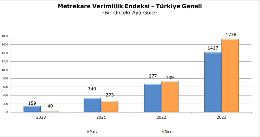 Nisan 2023 döneminde AVM Metrekare Verimlilik Endeksi, bir önceki yılın aynı ayına göre nominal olarak yüzde 135,2 arttı.