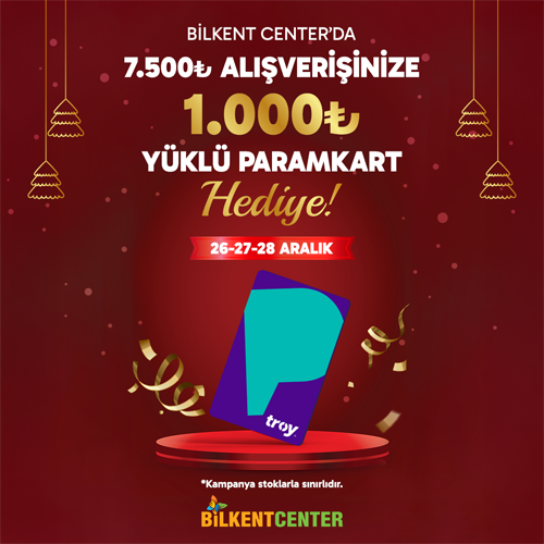 26 – 27 – 28 Aralık tarihlerinde geçerli olacak kampanya kapsamında, Bilkent Center’daki tüm mağazalardan (Migros hariç) aynı gün içinde en fazla iki fiş veya faturada toplam 7.500 TL ve üzeri alışveriş yapan ziyaretçilere, 1.000 TL değerinde Bilkent Center Kart hediye edilecek.