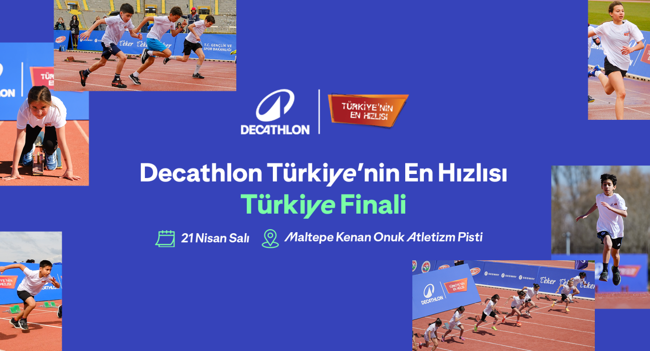 Decathlon Türkiye’nin isim sponsorluğunda, Türkiye Atletizm Federasyonu ve BRO’event iş birliğiyle düzenlenen “Decathlon Türkiye’nin En Hızlısı” atletizm yarışlarının Türkiye Finali, 21 Nisan 2026 tarihinde İstanbul Maltepe Kenan Onuk Atletizm Pisti’nde gerçekleştirilecek. 23 Nisan Ulusal Egemenlik ve Çocuk Bayramı coşkusunu sporla buluşturacak yarışlar tüm çocuklara ve yetişkinlere açık, ücretsiz olarak izlenebilecek.